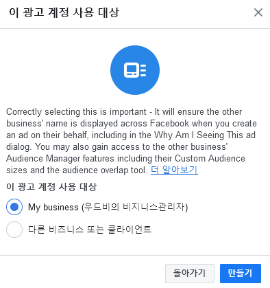 비지니스 관리자 안에는 여러 개의 광고계정을 만들 수 있습니다.